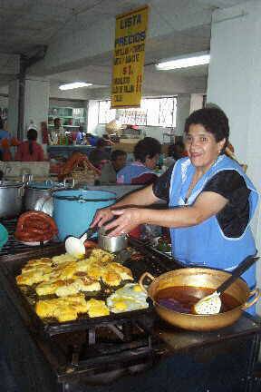 Los famosos "Llapingachos" en el mercado